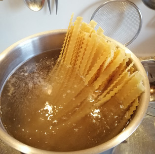 Lessate le reginette in abbondante acqua salata, scolate al dente e fermate la cottura passandole sotto il getto di acqua fredda. Aggiungete un filo d'olio per non farle attaccare.